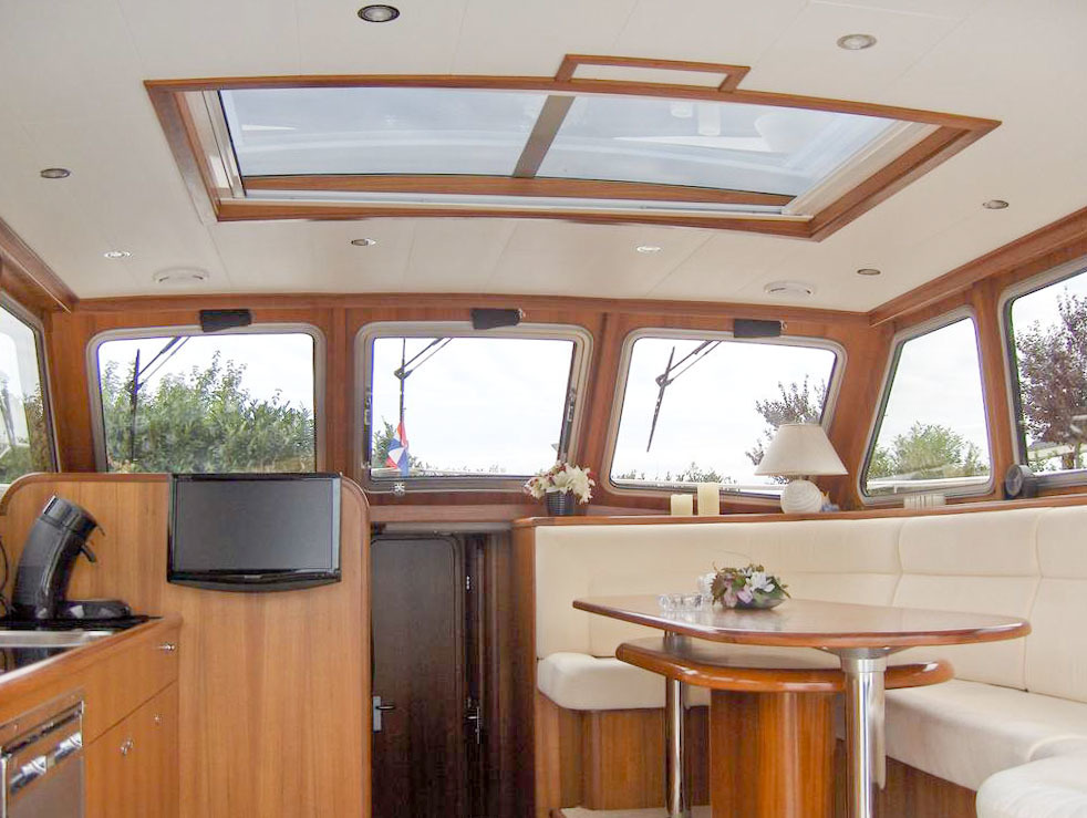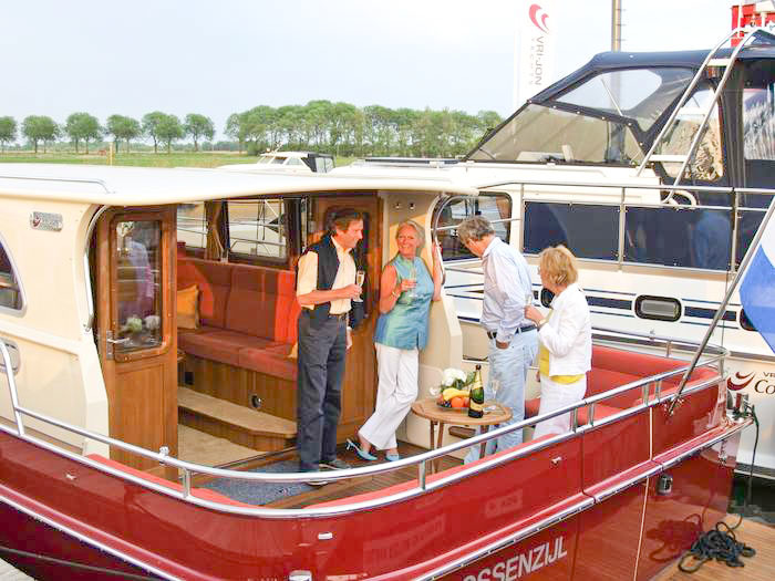 Vri-Jon OK 45 Classic Royaal ist eine sehr großzügiges und Luxus offener Plicht Stahl Motoryacht für 4 Personen geeignet für sowohl das Binnen- als auch für die Aussengewässer Europas. Die Vri-Jon-Werft DSA Yachts in Ossenzijl – Holland baut die Schiffe was oft dem Wunsch des Kunden entspricht. Vereinbaren Sie mit uns einen Termin um Ihre persönliche Wünsche zu besprechen !