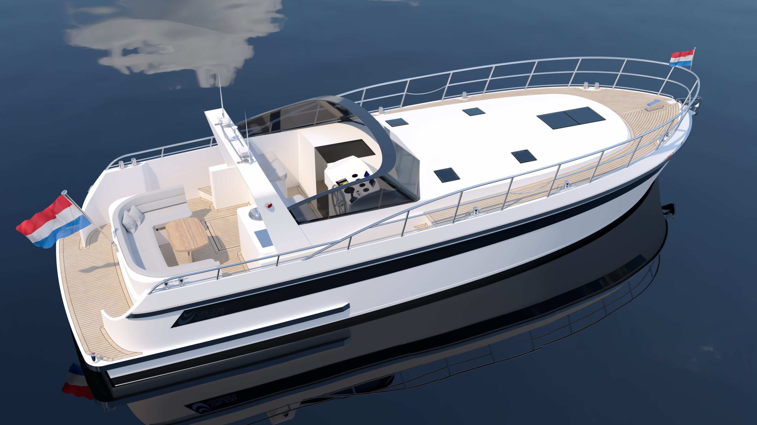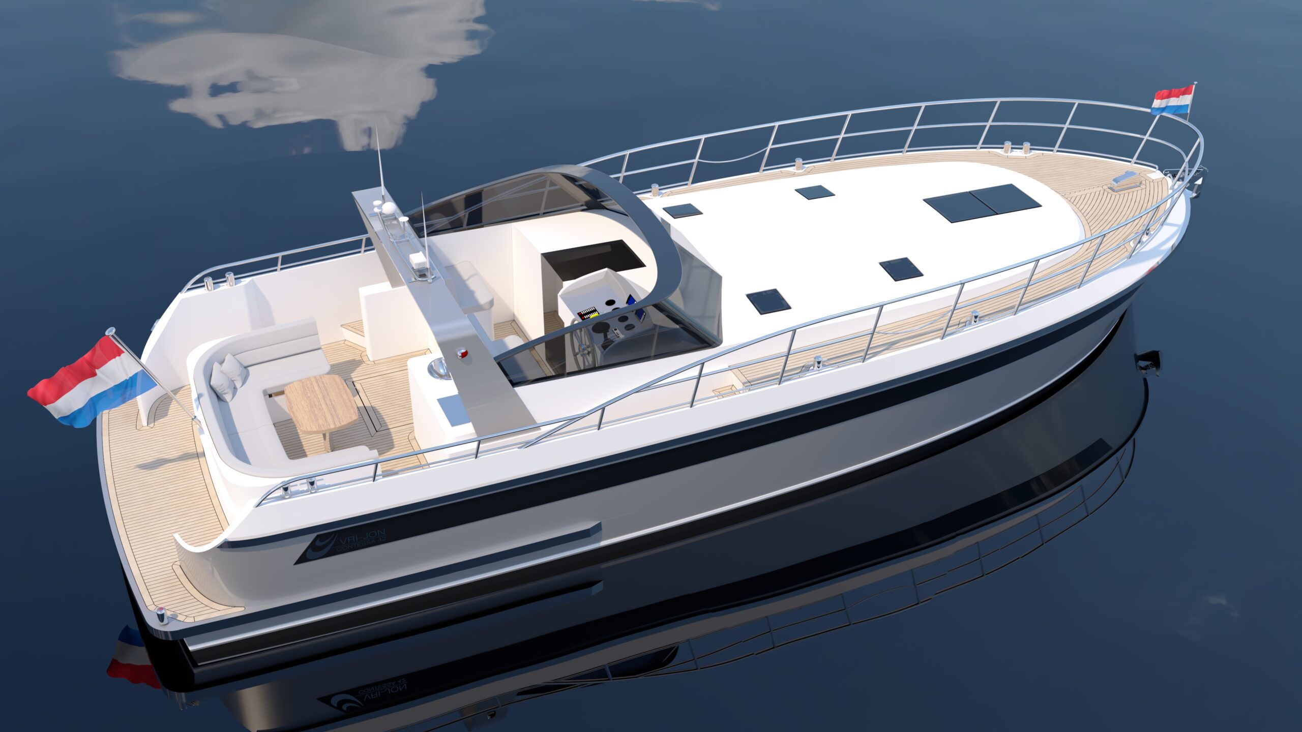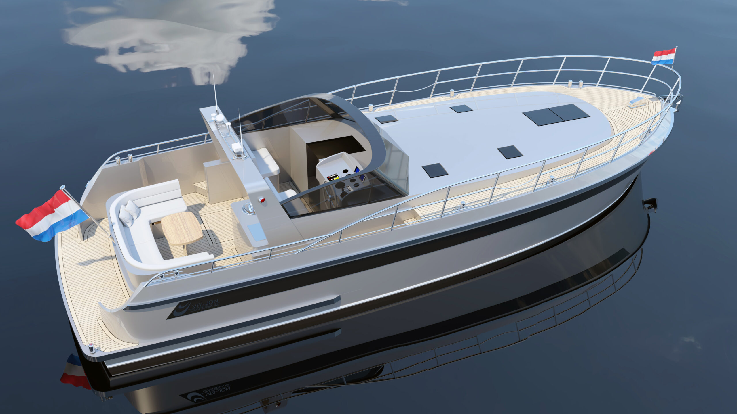 Standard layout includes two cabins and an enlarged living area. The cabrio roof allows flexible cruising in all conditions.