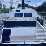 The complete steel round bilge has flowing lines and is extremely stable. A special feature is the low clearance height and minimal draught, which allows you to safely choose more adventurous waterways. The wide gangways are at the same height as the wheelhouse floor, where you will find a raised duo couch and a carefully designed wheelhouse cap for an optimal 360 degree panoramic view. Thanks to the unique split-level system, this 15-metre long ship offers the same space as an equivalent 17-metre ship.