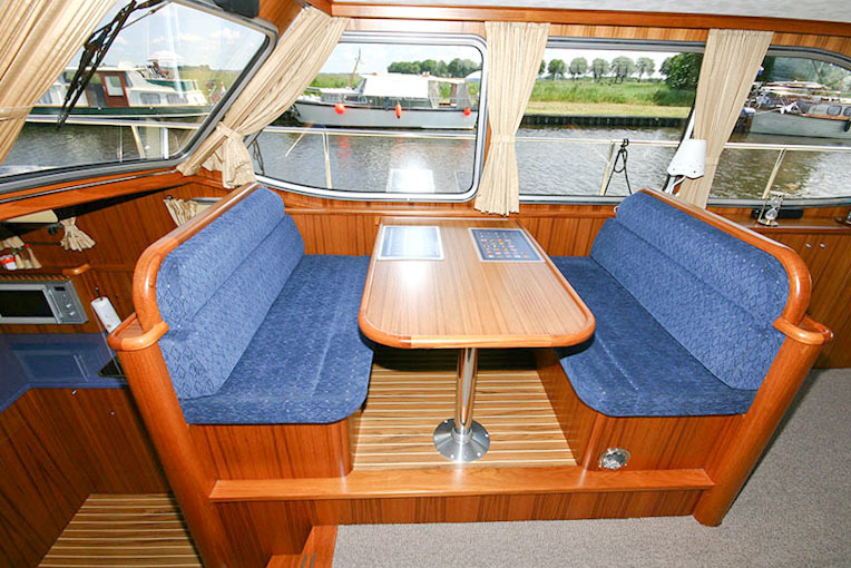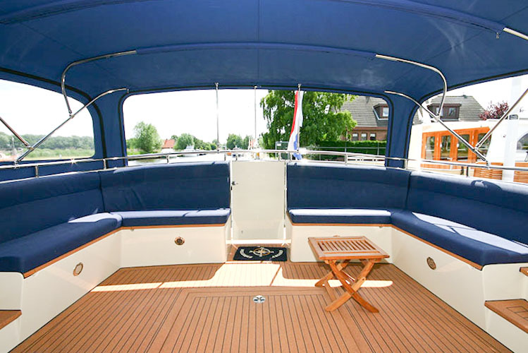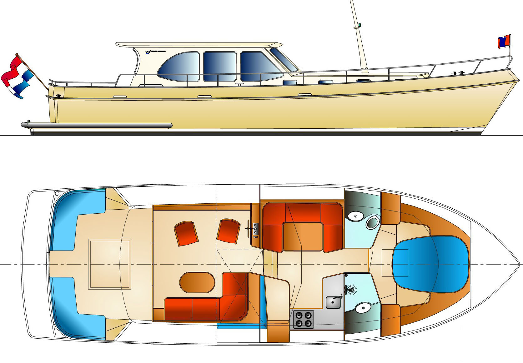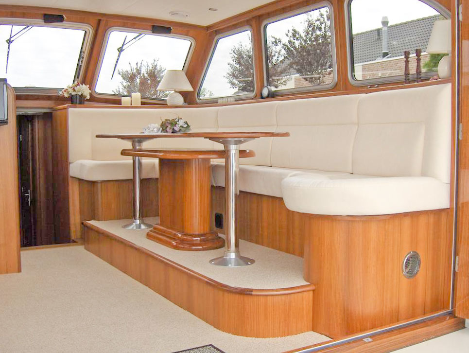 Vri-Jon OK 45 Classic Royaal is a very spacious and luxurious open cockpit steel motor yacht for 4 persons which is suitable for both inland- and seawater in Europe. The Vri-Jon shipyard DSA Yachts in Ossenzijl – Holland built these yachts custom build i.e. often to the wishes of the customer. Make an appointment with us to discuss your personal wishes!