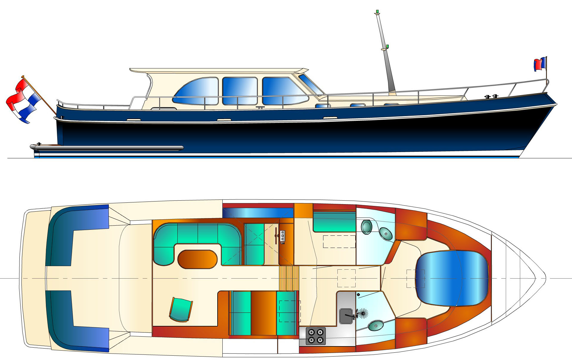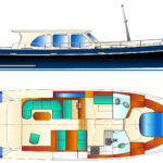 A very spacious and luxurious open cockpit steel motor yacht for 4 persons which is suitable for both inland- and seawater in Europe. The Vri-Jon shipyard DSA Yachts in Ossenzijl – Holland built these yachts custom build i.e. often to the wishes of the customer. Make an appointment with us to discuss your personal wishes!