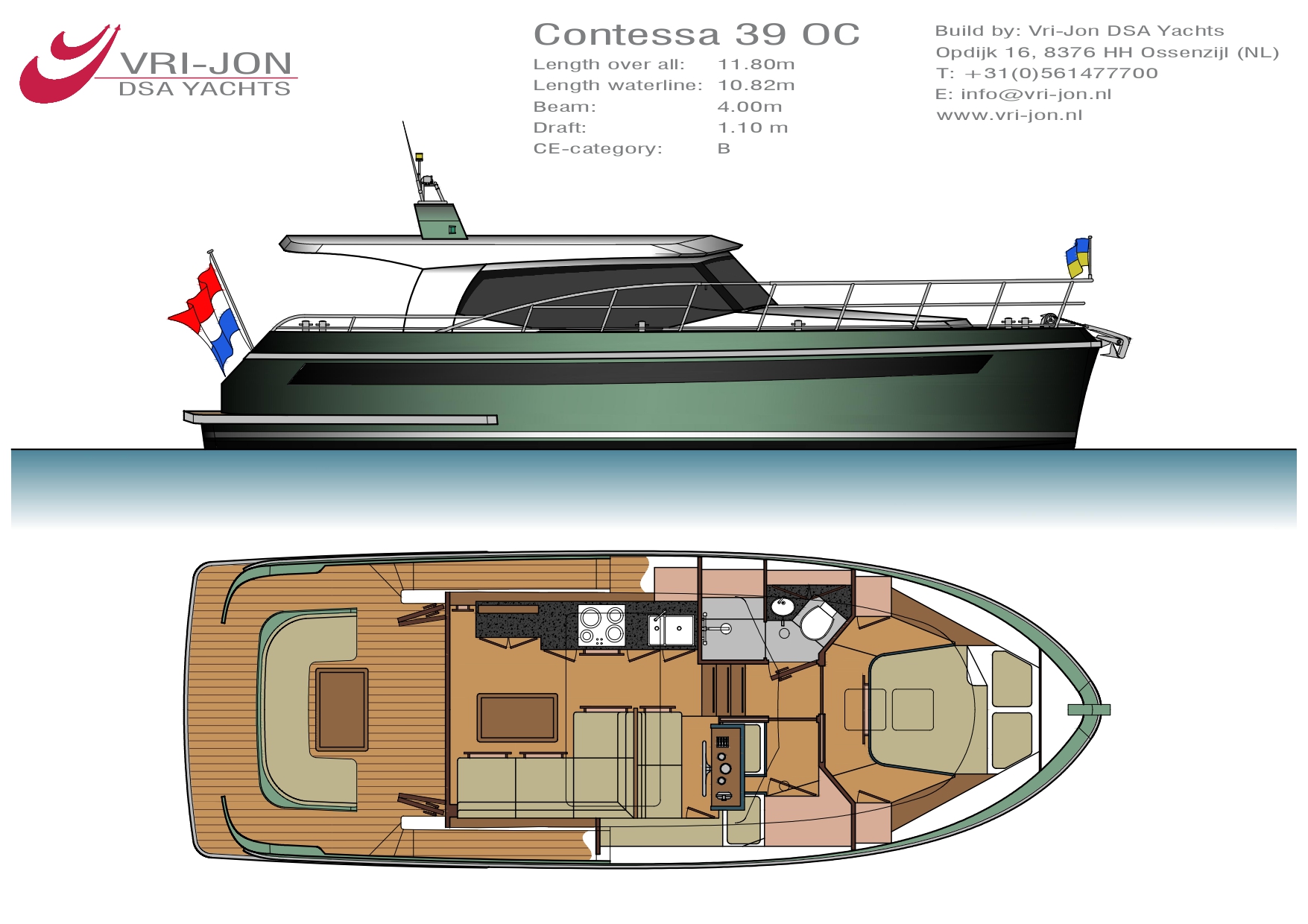 The open-cockpit design creates a natural connection between interior and exterior. Its practical layout makes the yacht well suited for longer trips and extended stays on board. As with all Contessa models, each yacht is fully custom built by DSA Yachts.