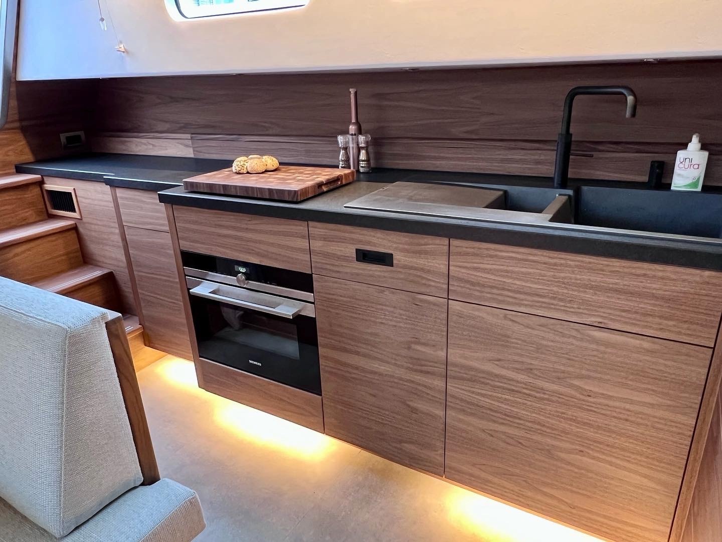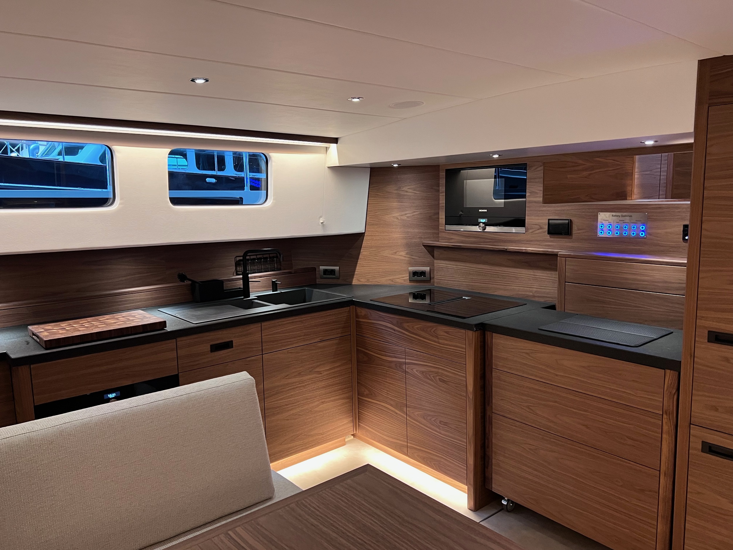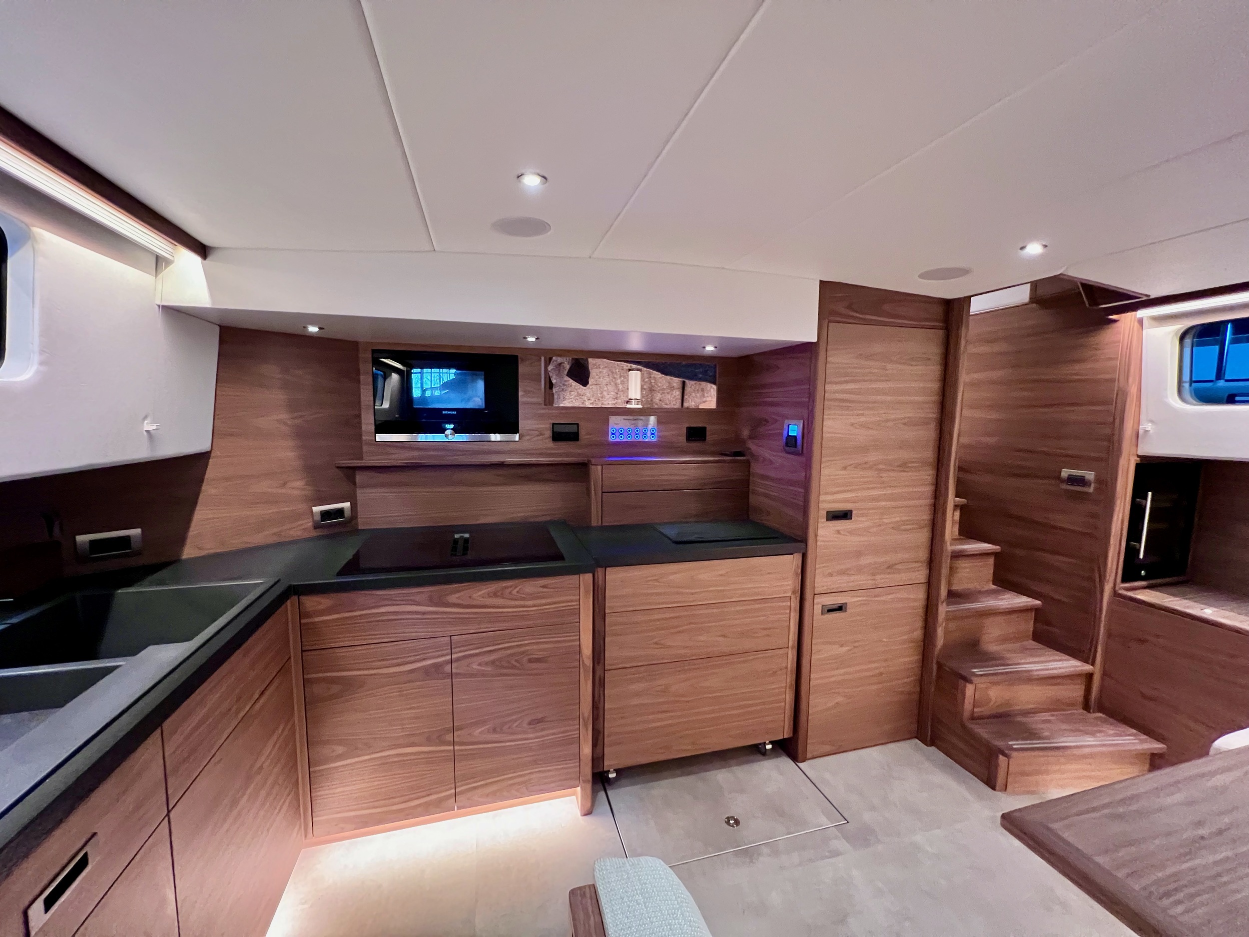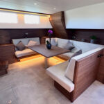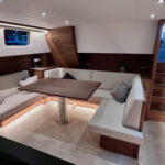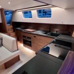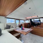 Het interieur is ruimtelijk, speels en zeer comfortabel, dit niet in de laatste plaats door zeer veel aandacht voor ergonomie. Er is veel werkplek en een langsscheepse keuken met een uitzonderlijk lang werkblad en uitzicht naar alle kanten. Er zijn ruime mogelijkheden om te zitten en liggen, het schip kent goede looproutes en daarnaast veel privacy zonder het ruimtegevoel te verliezen.